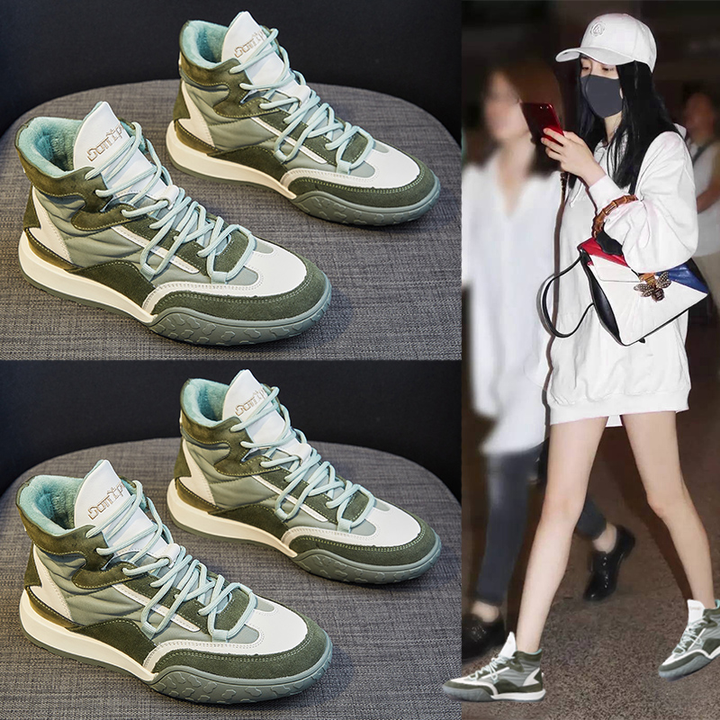 增高帮老爹鞋 帆布鞋 松糕厚底半拖爆款 秋冬小白鞋 麦昆百 女2025新款