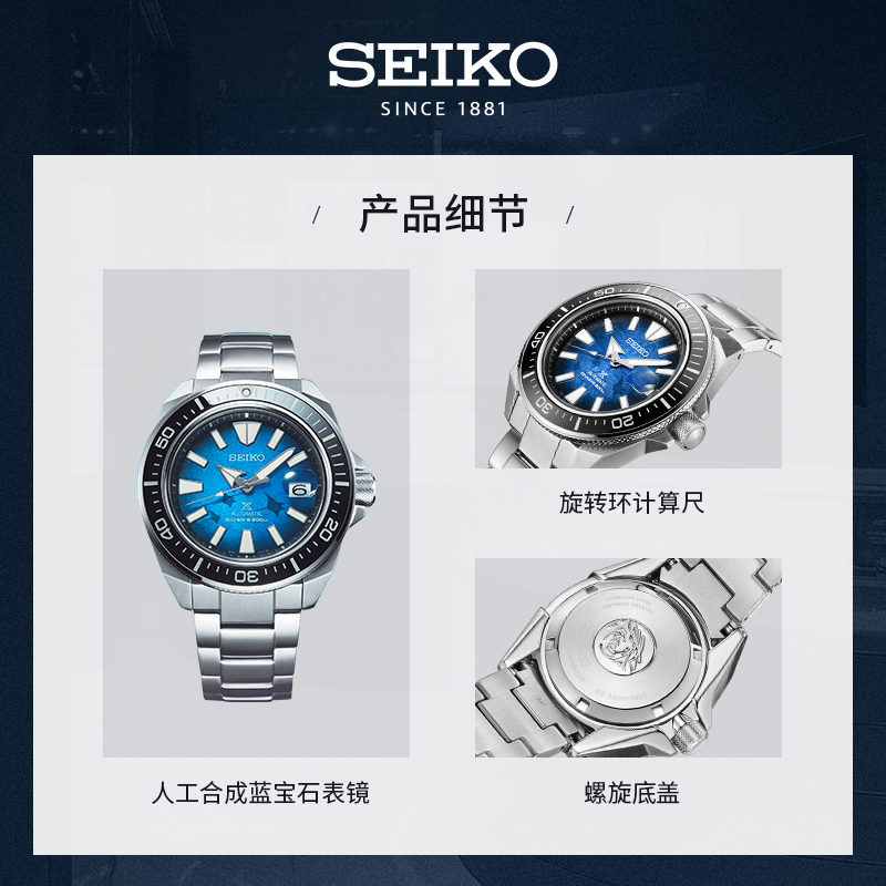 SEIKO精工手表男女款 节日礼物 魔鬼鱼潜水海洋运动休闲防水机械表