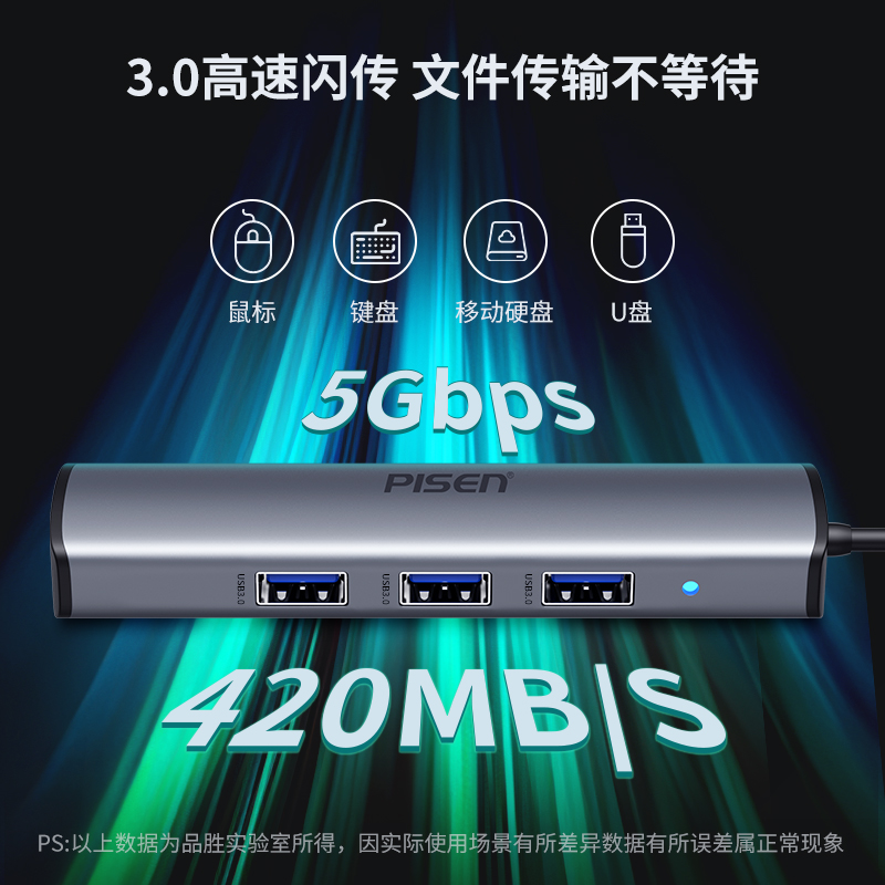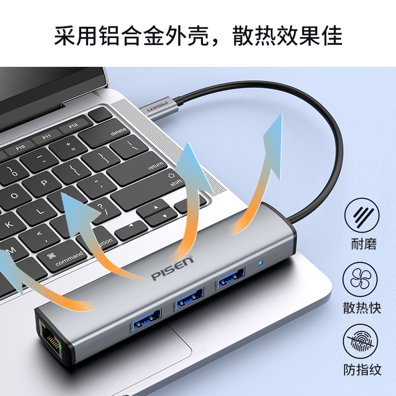 品胜拓展坞Typec扩展网线usb转换头hub分线器3雷电4转接千兆网口适用macbook电脑air平板iPad笔记本pro手机