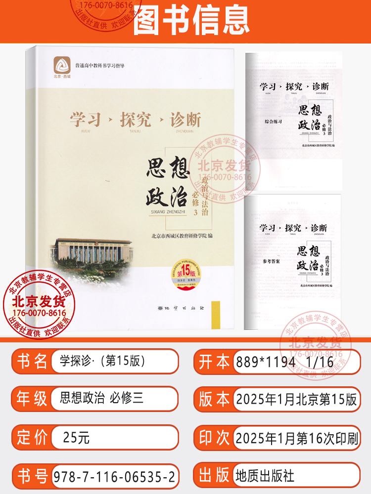 第15版 社 学习探究诊断 地质出版 北京市西城区教育研修学院编 学探诊高中政治必修三 政治与法治 必修3 思想政治 北京西城 2025