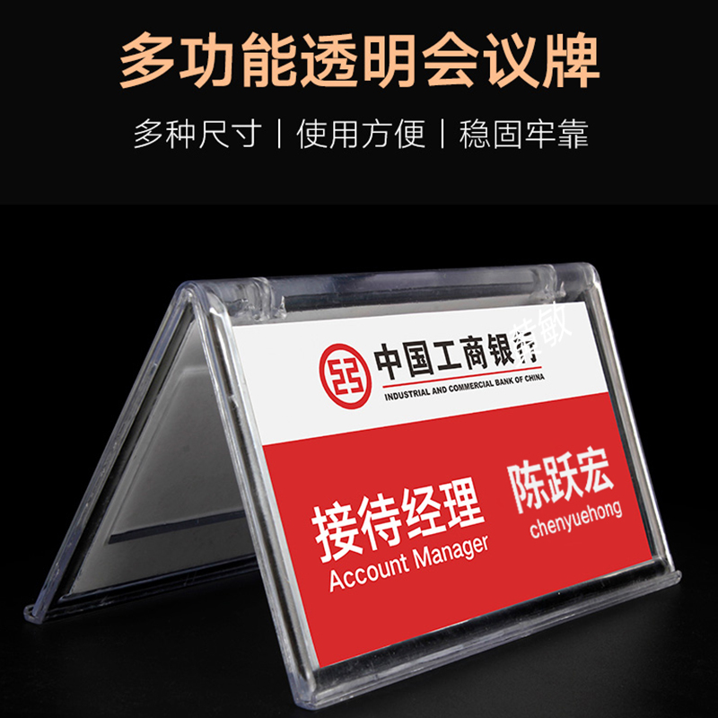 亚克力会议牌立牌透明V型桌牌摆台评委名字牌席卡介绍台卡桌签领导座位台牌学生姓名三角展示牌铭牌定制水牌