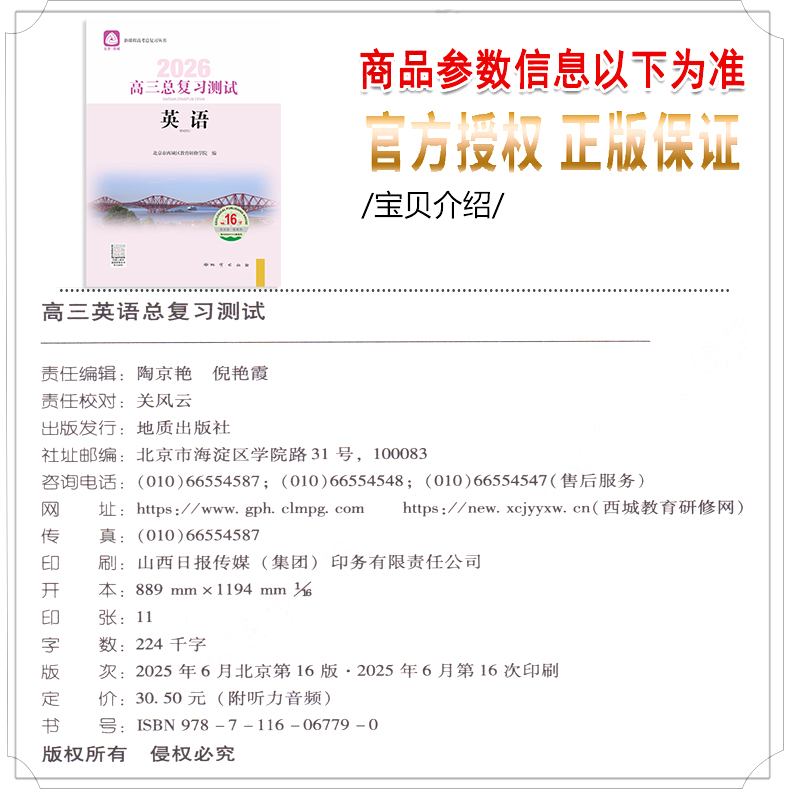 学习探究诊断北京市西城教育研修学院地质出版 2026高三英语总复习测试第16版 北京西城学探诊高中英语总复习高3高考英语练习册