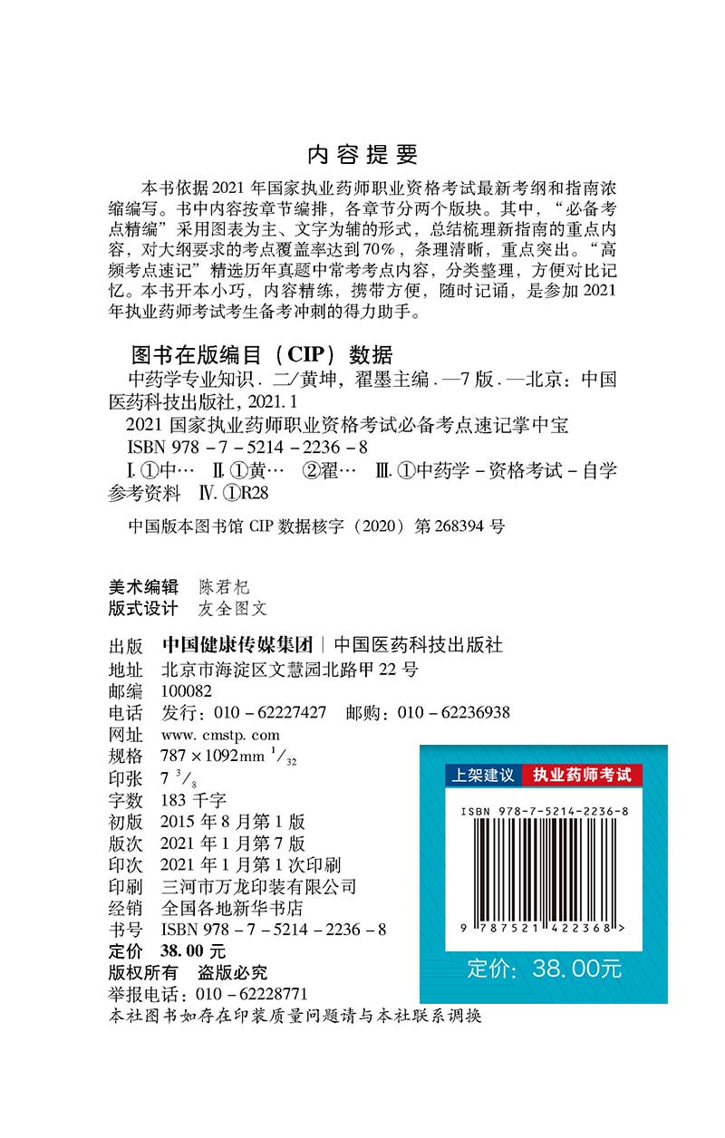 社 2021国家执业药师职业资格考试必备考点速记掌中宝中国医药科技出版 现货中药学专业知识二第七版