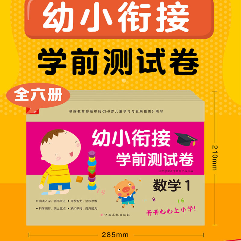 幼儿园小学教材江西高校出版 幼小衔接学前测试卷 6岁儿童学习与发展指南开开信心上小学沃野童书老师推荐 语言数学拼音3 书籍 全6册