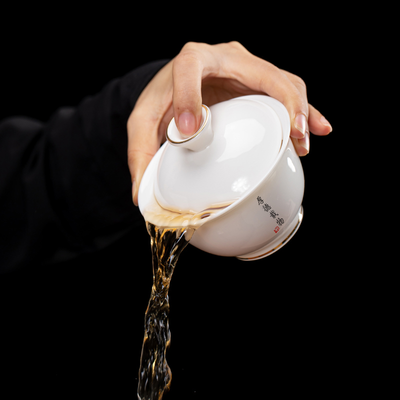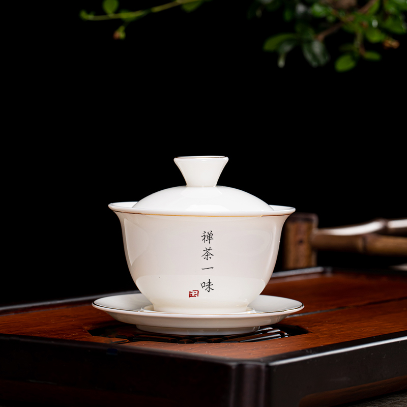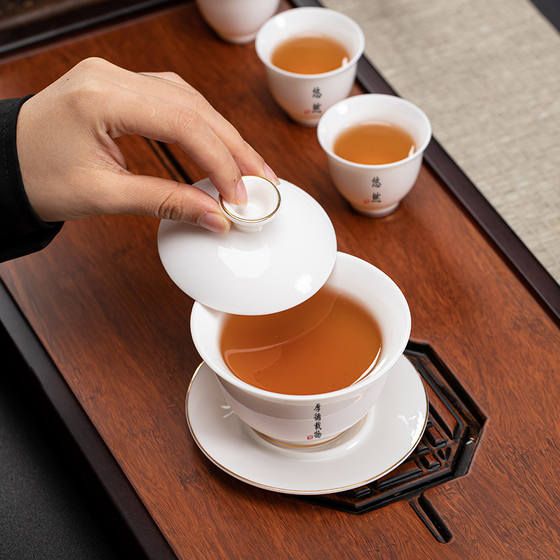 德化羊脂玉白瓷盖碗单个大号泡茶碗私人定制家用三才盖碗刻字logo