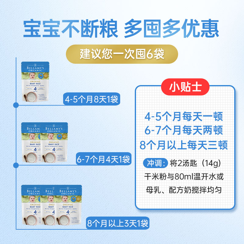 澳洲贝拉米米粉1段高铁米糊婴幼儿婴儿宝宝原味营养辅食4 36个月