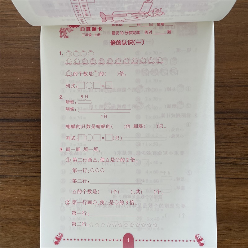 竖式 应用题 计算题小学生口算题天天练1年级上学期同步训练课时学检测练习 数学上册口算题卡 共3册2025秋小学三年级冀教版