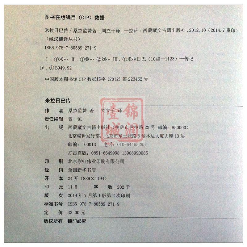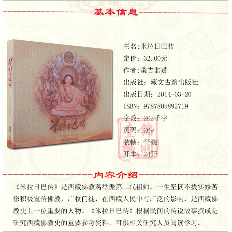 社 西藏藏文古籍出版 米拉日巴传 桑杰鉴赞;刘立千