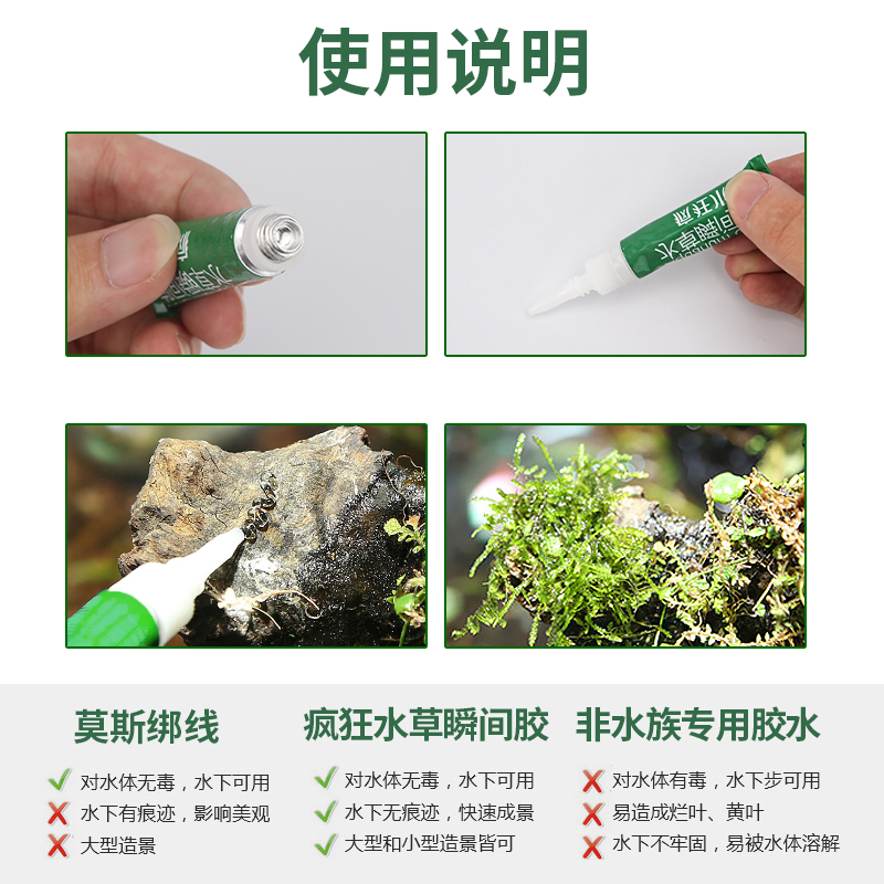 疯狂水草水草胶水5g装 透明进胶沉木石头莫斯水草速干造景胶水配件
