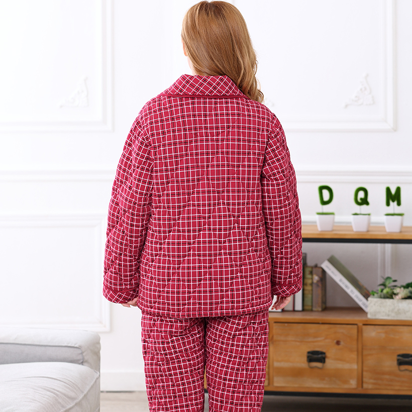 全棉三层棉袄加厚秋冬天保暖家居服 大码 冬季 女士纯棉夹棉睡衣套装