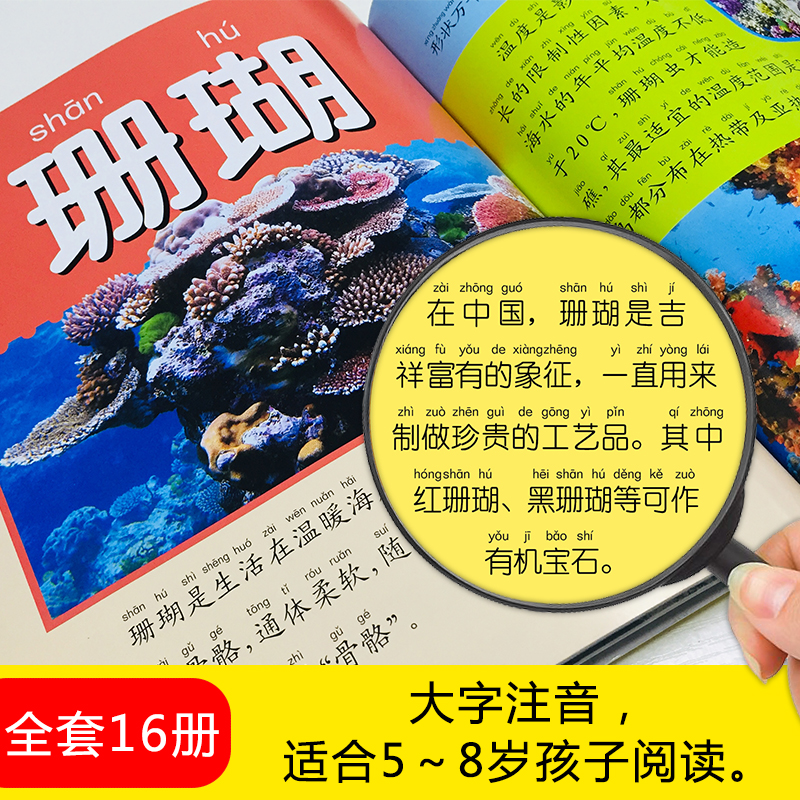 全套16册儿童百科全书彩图注音版 少儿课外科普阅读 海洋动物鸟类昆虫大百科揭秘太空宇宙地球人体恐龙探秘汽车飞机兵器认知小百科
