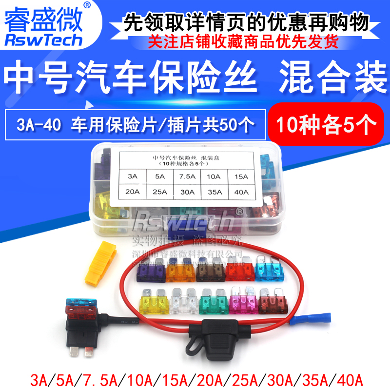 汽车保险丝插片20A 中号 15A 35A40A 汽车保险管 10A 氙气灯