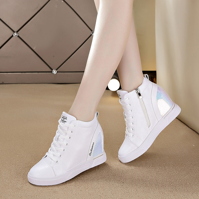 小白鞋 内增高女鞋 休闲坡跟显瘦单鞋 百搭高帮运动鞋 2025年春夏新款
