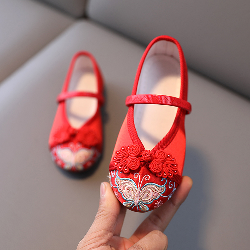 演出小白鞋 古风汉服鞋 中国风马面裙童鞋 女童绣花鞋 老北京儿童布鞋