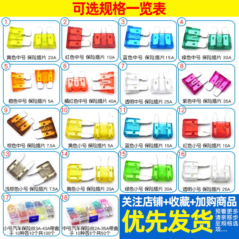 汽车保险管保险丝片电动车摩托车20A25A30A5A15A10A40A安电瓶插片