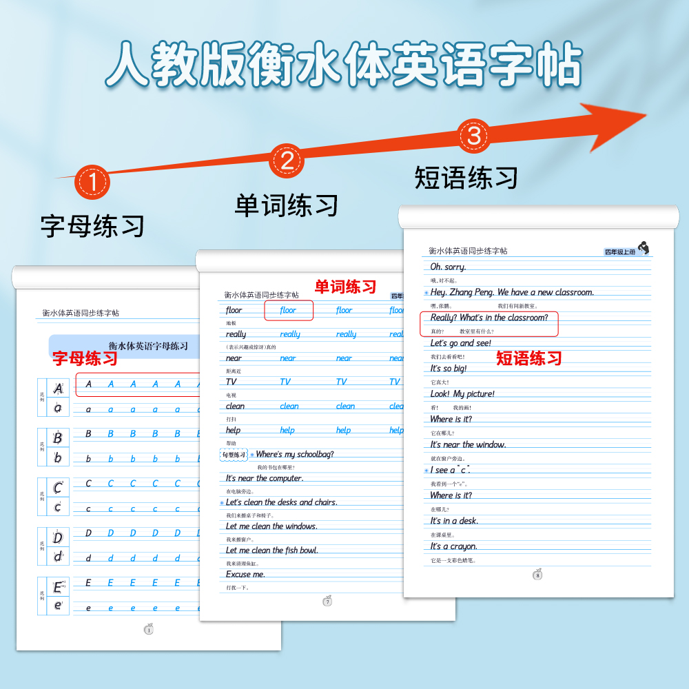 笔墨先锋 PEP衡水体英语课课练同步练字帖 衡水体英文字帖小学生英语字帖3三4四5五6六年级人教版