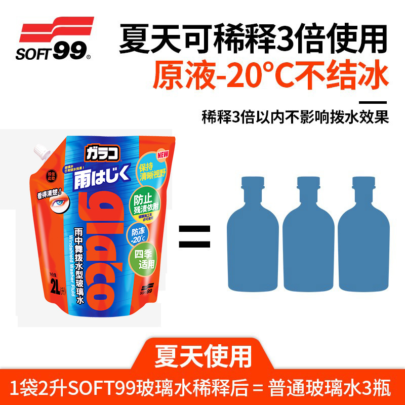 SOFT99镀膜玻璃水防冻汽车用夏季 去除油膜 驱水防雨浓缩雨刮液四季
