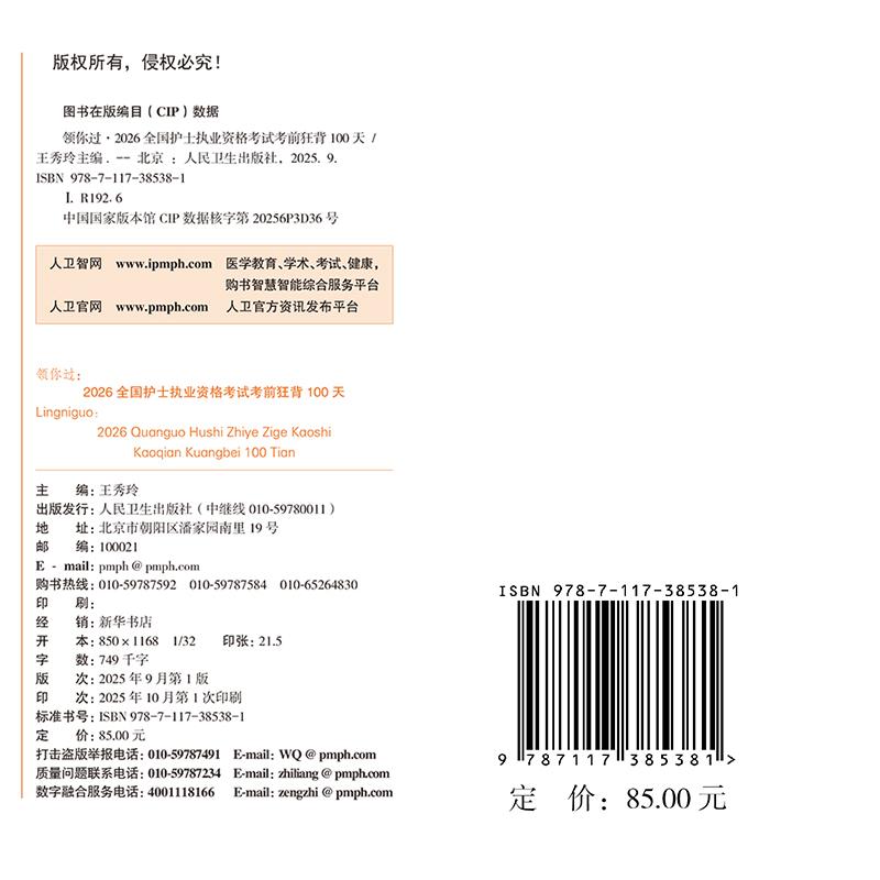 考前狂背100天 护士资格护资考试 王秀玲 赠数字资源 人民卫生出版 2026全国护士执业资格考试 平装 社9787117385381 领你过
