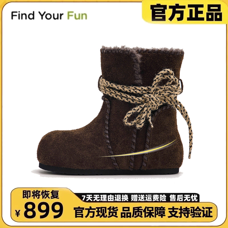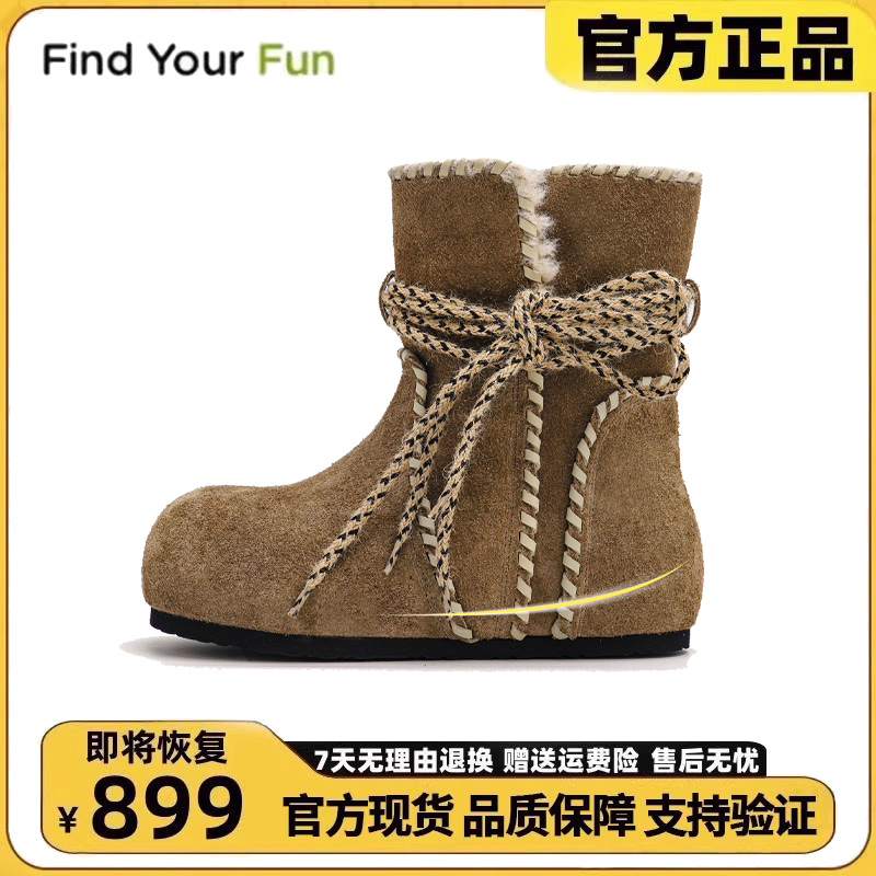 勃肯鞋 棉鞋 女 过检费尔岛~6cm增高真皮羊毛雪地靴女加绒冬季 正品