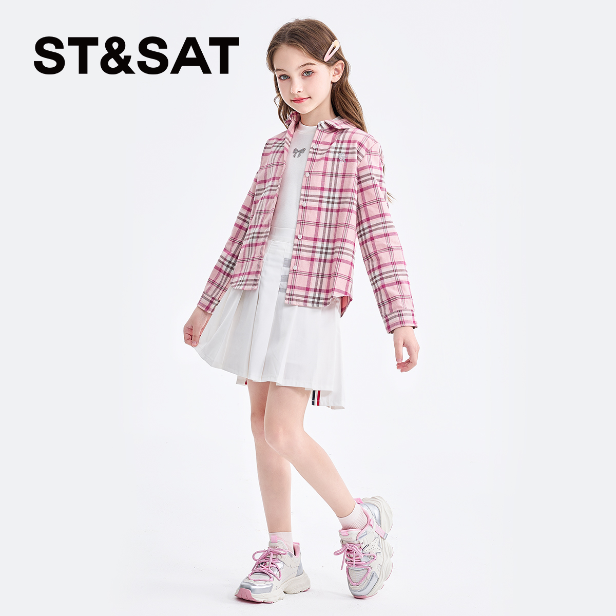 儿童轻便网面透气跑步鞋 星期六童鞋 新款 2025春秋季 女童运动老爹鞋