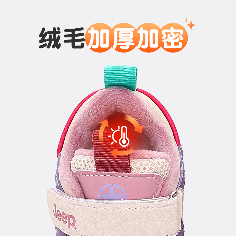 加绒包头防踢女童保暖鞋 jeep宝宝学步鞋 儿童二棉鞋 子秋冬款 男宝鞋