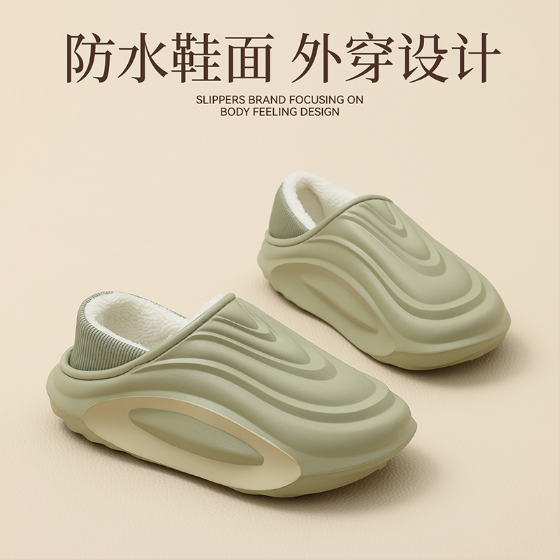 棉鞋 棉拖鞋 包跟室内家居防水防滑厚底保暖加绒女款 冬季 男外穿 男款