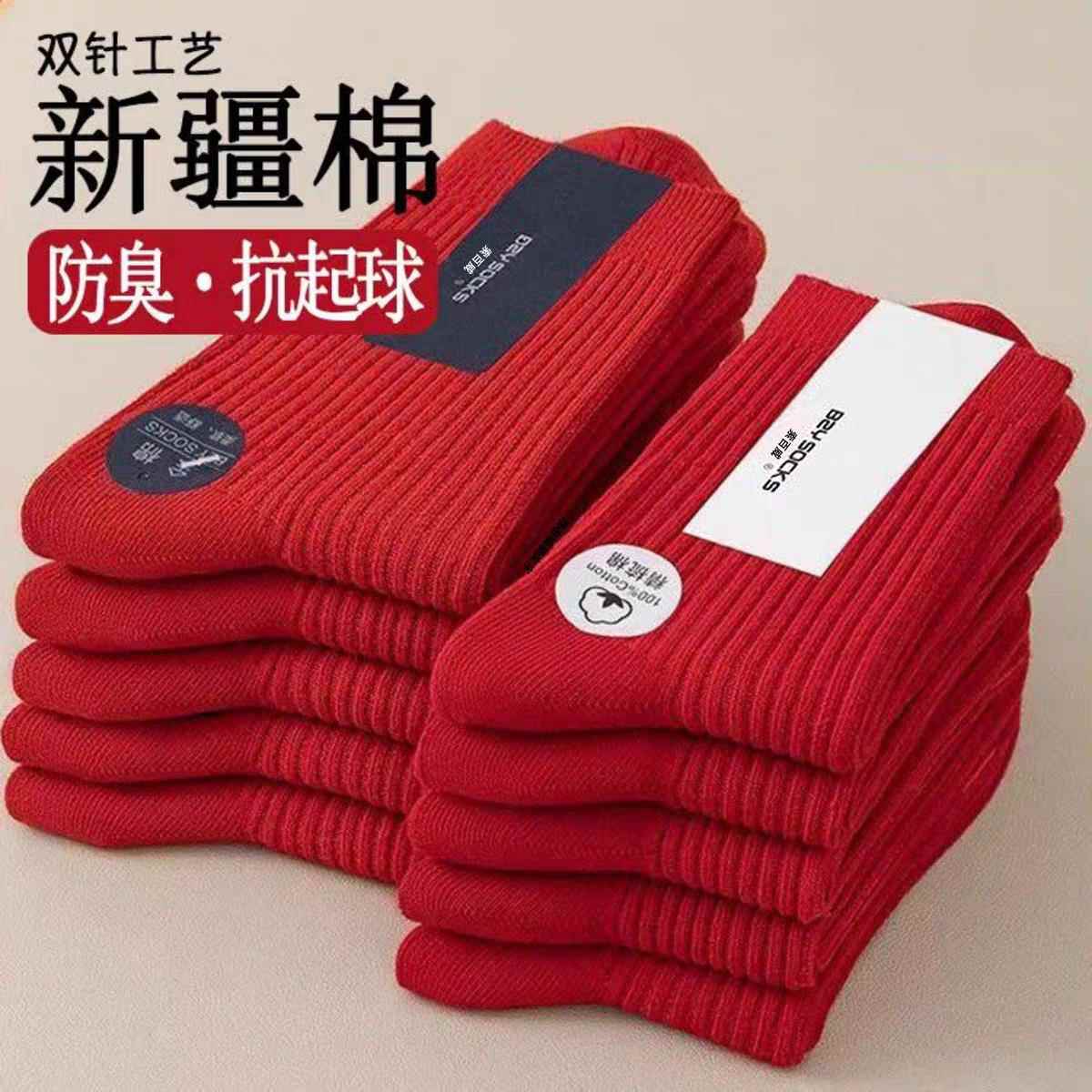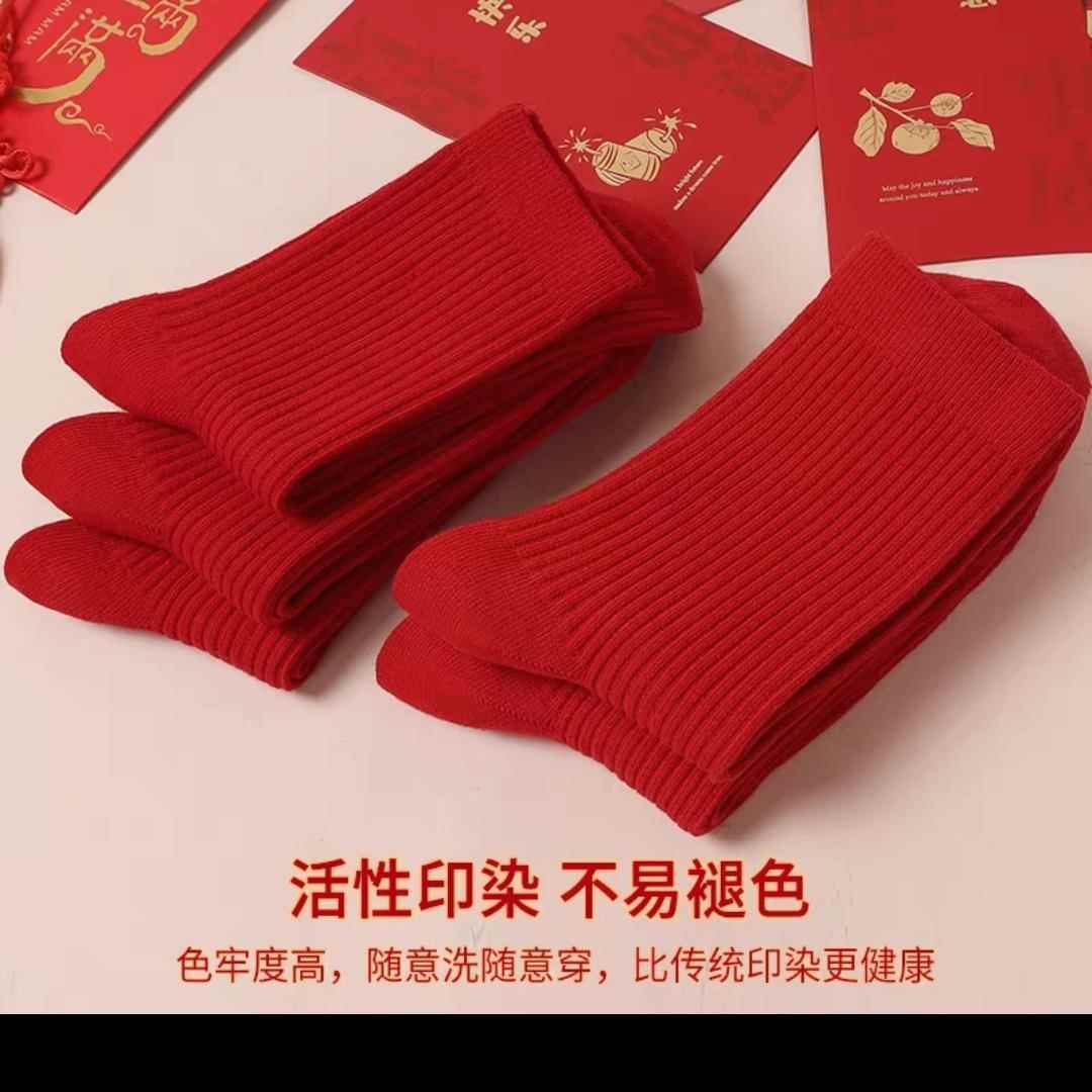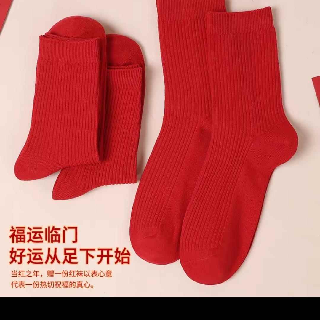 红袜子结婚情侣一对喜字女纯棉中筒袜新婚船袜大红色本命年蛇年男