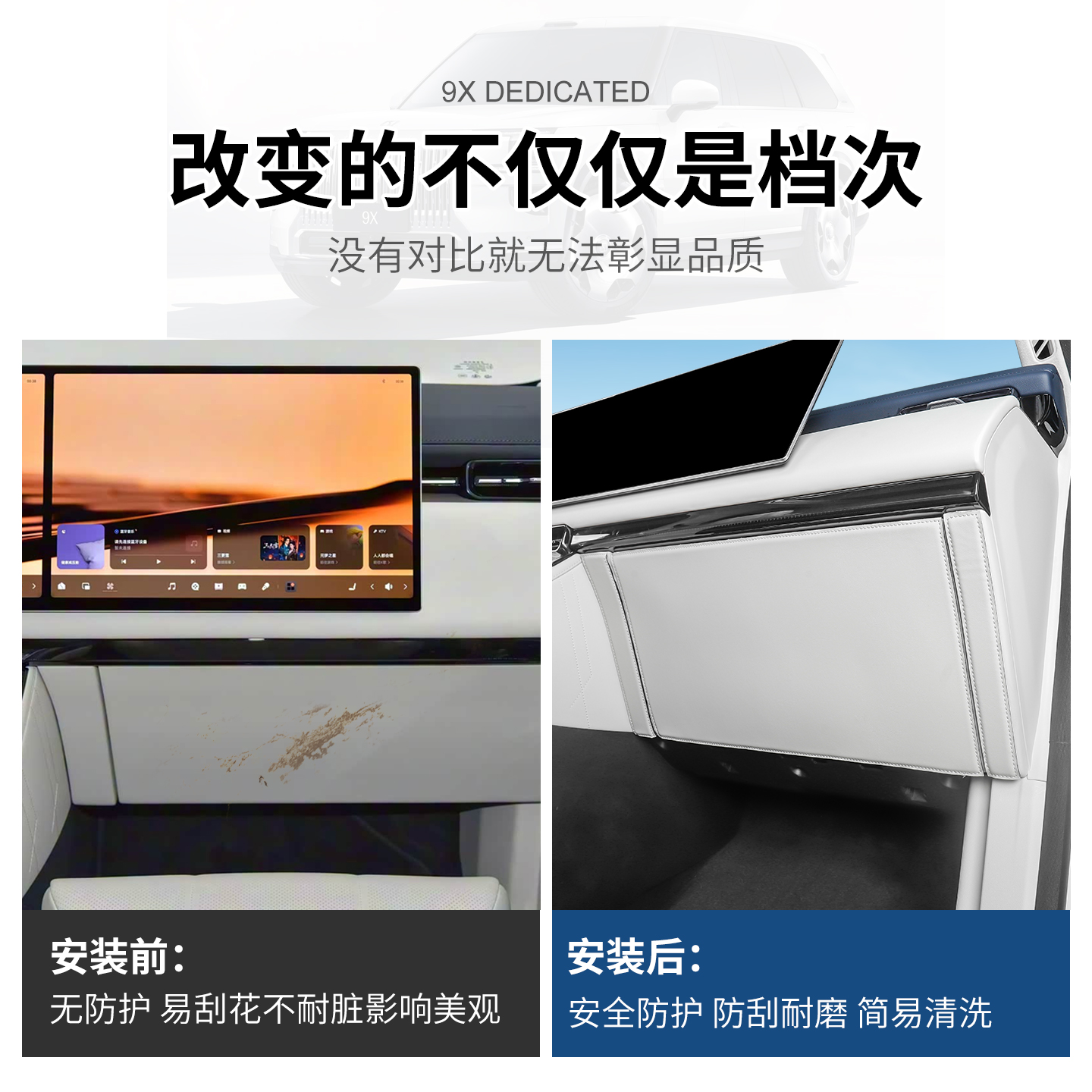 适用于极氪9X主驾驶防踢垫方向盘下防刮护贴片汽车内饰配件用品