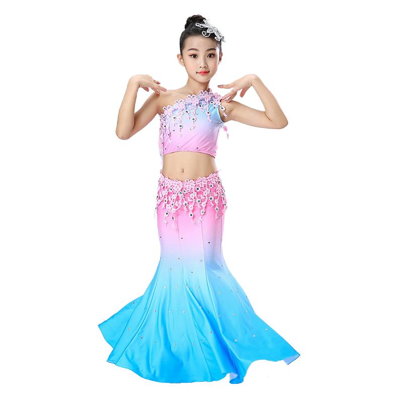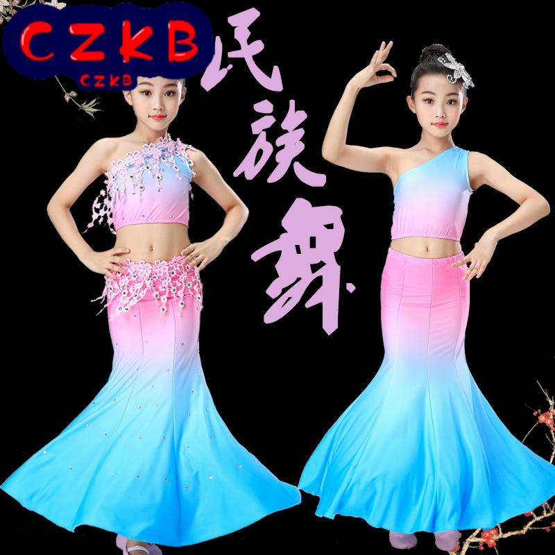 艺考练习裙 鱼尾裙成人女儿童表演服装 新款 傣族舞蹈演出服渐变修身
