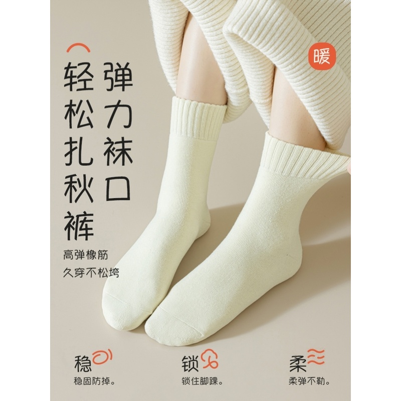 堆堆袜子女春秋款 白色中筒运动袜纯棉 长筒月子袜防臭诸暨配勃肯鞋