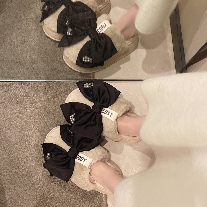 室内居家静音防滑保暖防臭情侣毛绒包头拖 2025新款 朴西棉拖鞋 女款