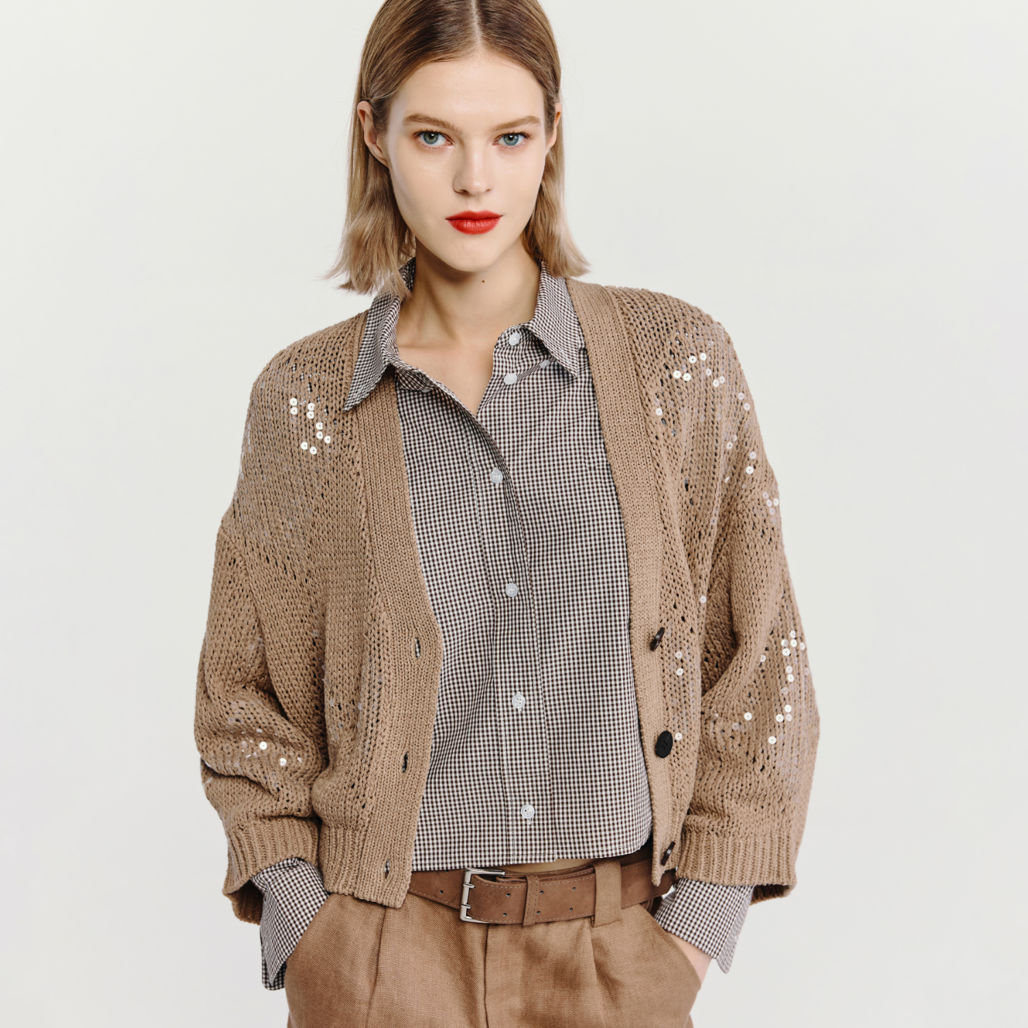 HAVVA宽松针织开衫 4901 莱赛尔天丝镂空可叠穿女士毛衣2025秋冬L3