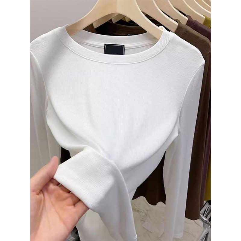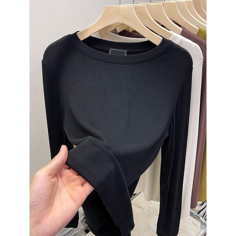 显瘦磨毛长袖 卡其色圆领打底衫 洋气内搭修身 新款 T恤1017r 女秋冬季