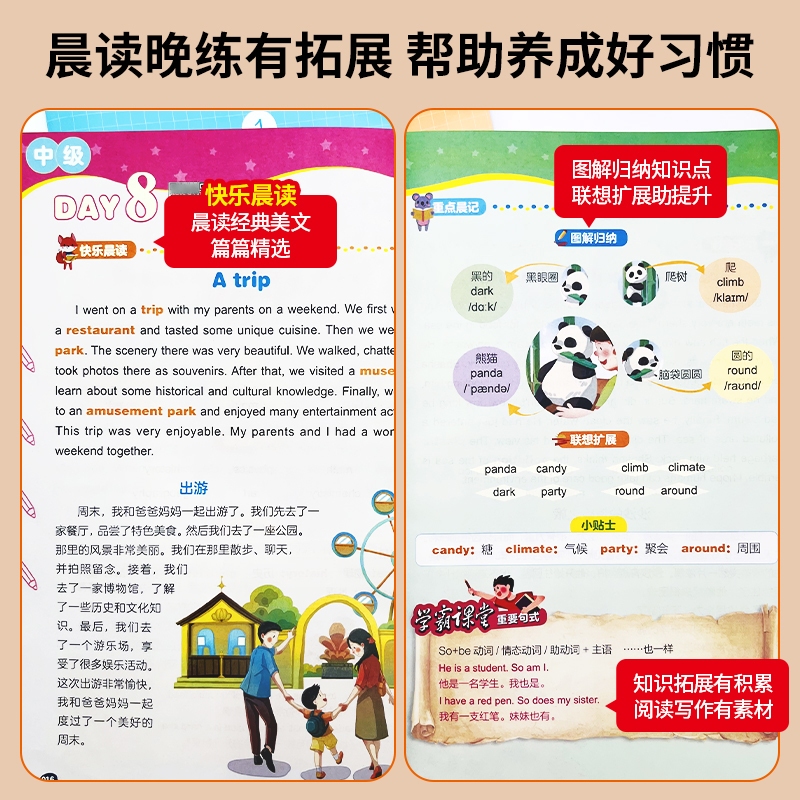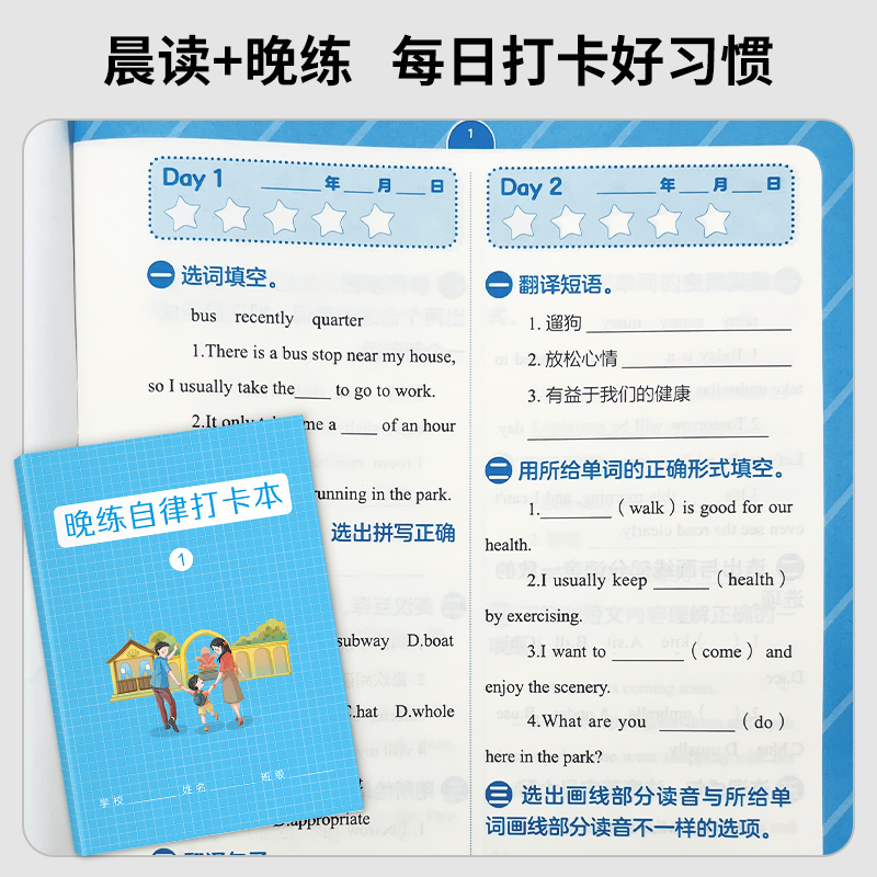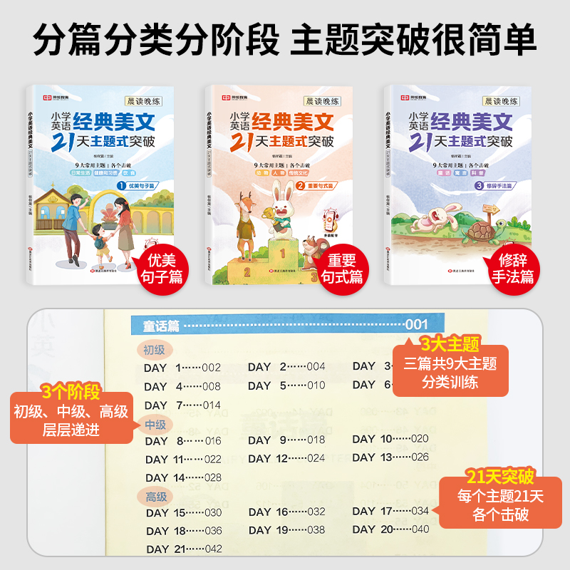 突破晨读晚练全套3册一二三四五六年级英语晨读美文100篇扫码 晨读美文21天主题式 小学英语经典 音频跟读每日学习打卡书本 荣恒