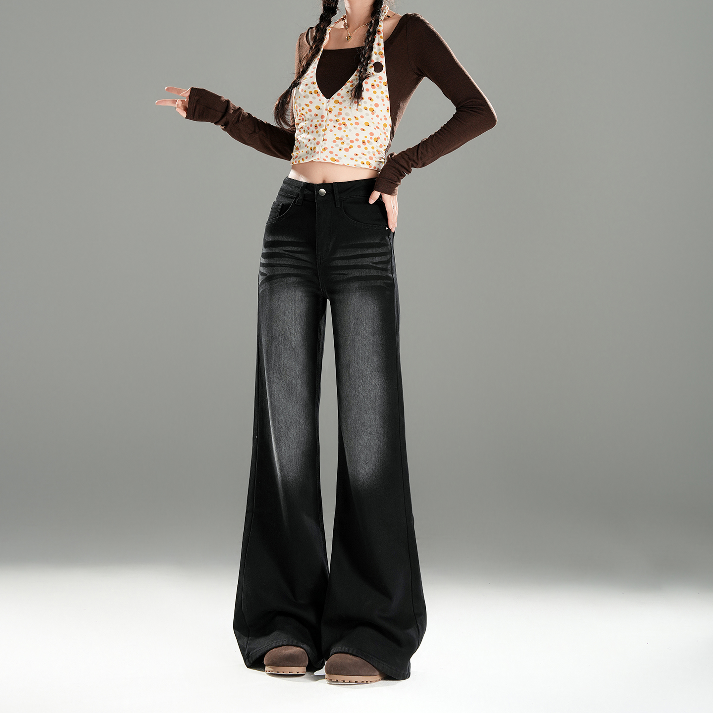 复古高腰宽松显瘦垂感直筒拖地裤 阔腿牛仔裤 秋款 爆款 子 女2025新款