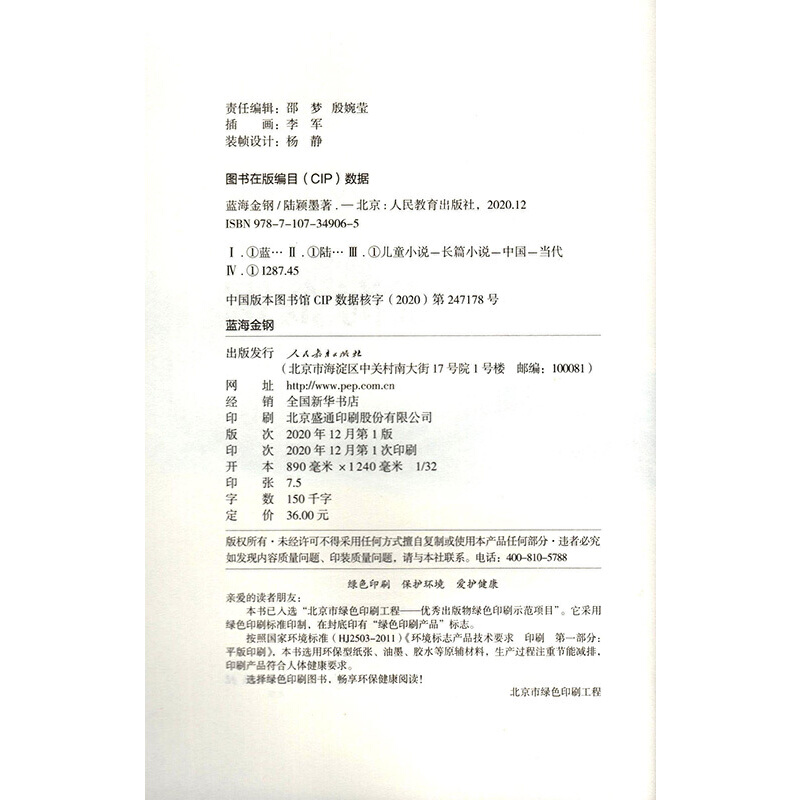 蓝海金钢 海军在西沙南沙生活 海军作家鲁迅文学奖得主陆颖墨新力作 社 长篇儿童小说K 人民教育出版 校园星阅读
