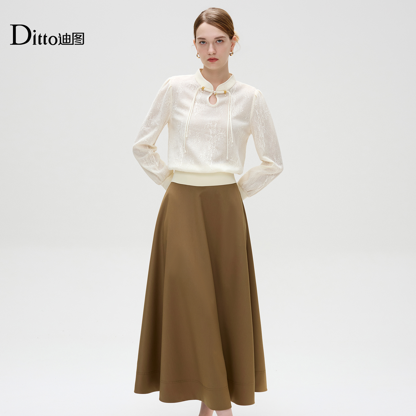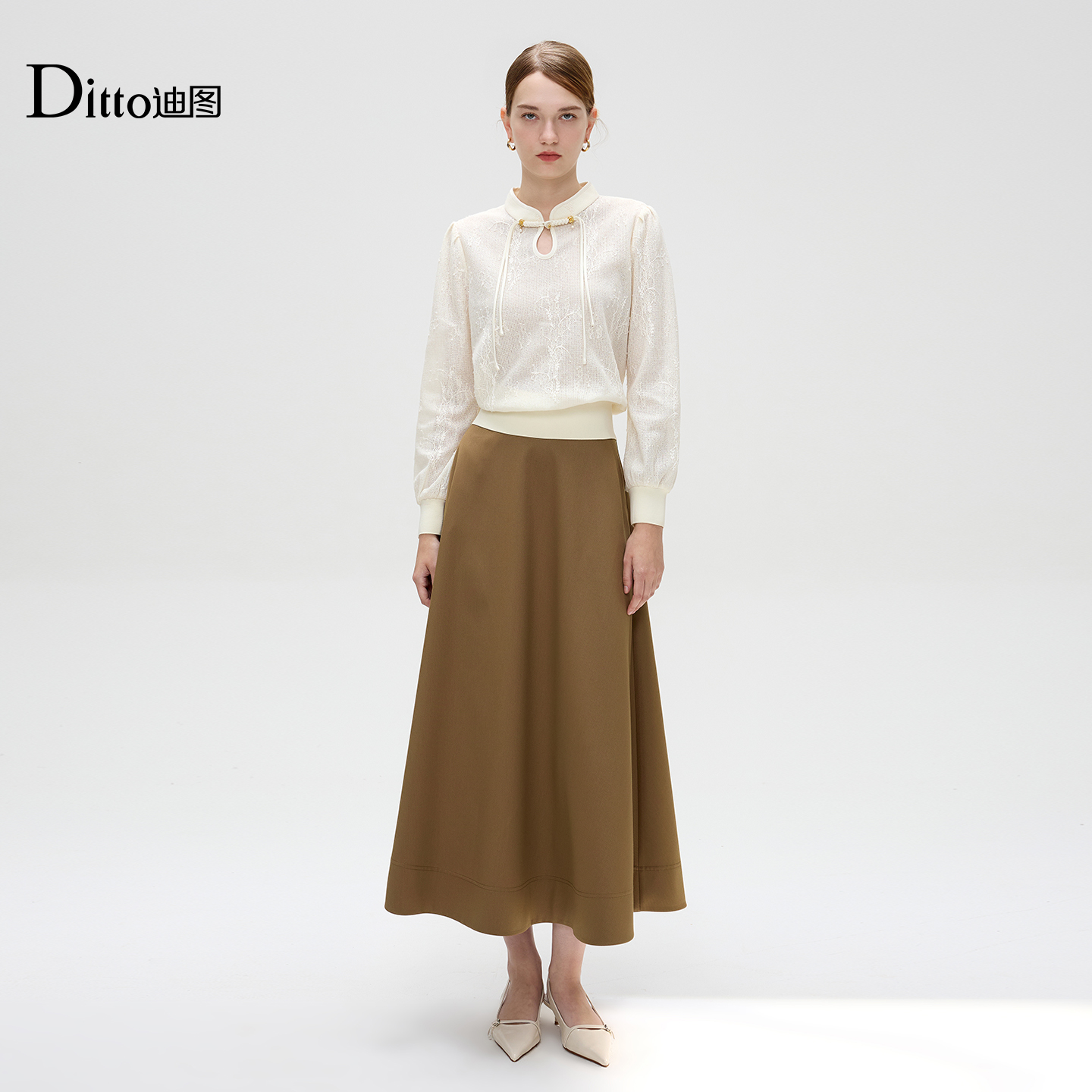 ONLY2025冬季 通勤风气质毛呢挺阔面料A字伞裙长裙半身裙女 新款
