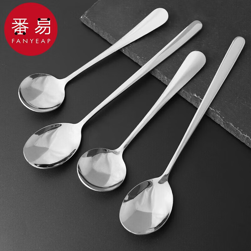 勺子 甜品勺吃饭公勺汤勺调羹家用长柄汤匙中西餐 不锈钢A1pn0