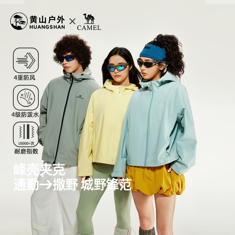 骆驼冲锋衣2025新款 联名黄山峰壳户外防风防水运动连帽早秋外套女