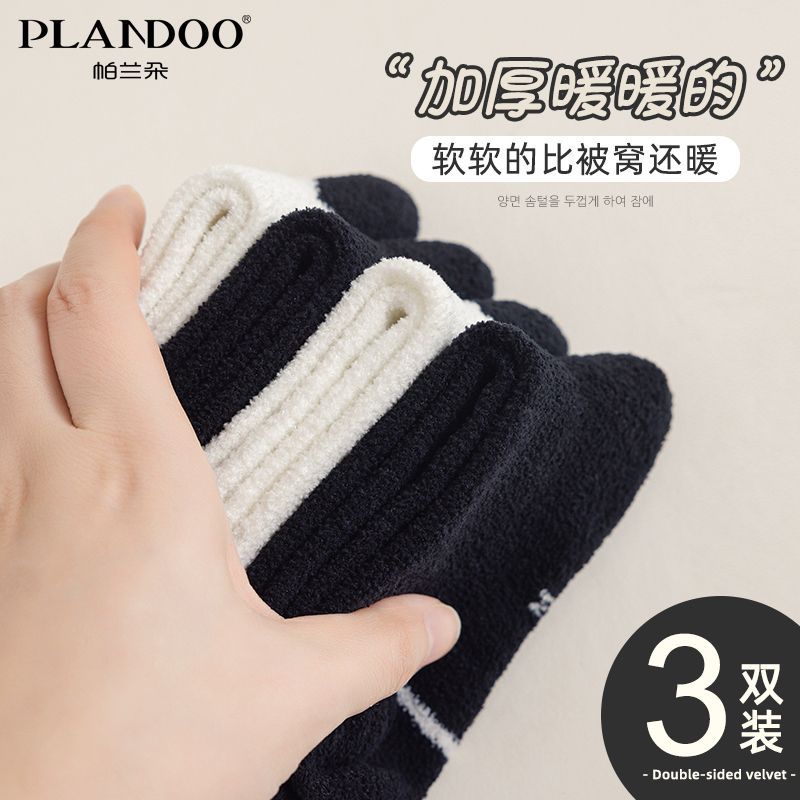 儿童袜秋冬款 加绒保暖双面绒中筒ins小众韩系风简约黑白百搭女童