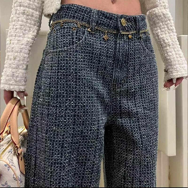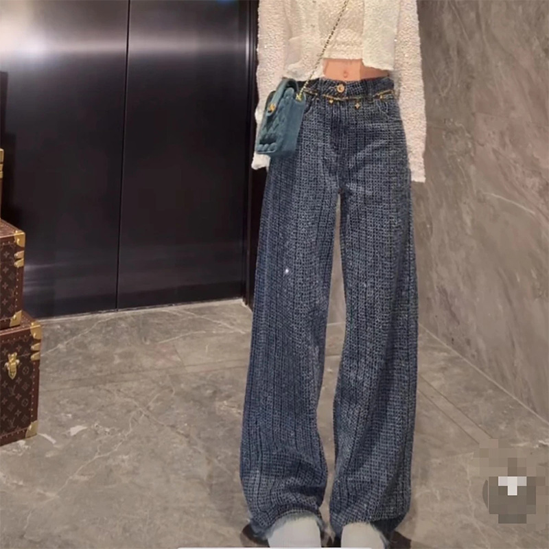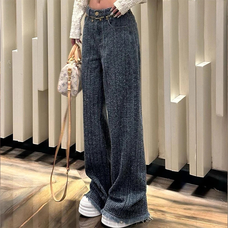 显瘦宽松直筒牛仔裤 王家有鱼秋季 2025百搭修身 复古蓝阔腿裤 女 新款