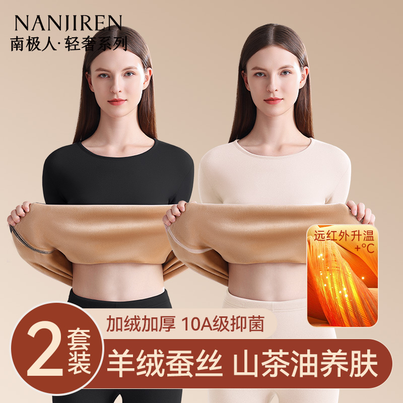 防寒冬季 加绒加厚德绒发热打底衫 套装 南极人保暖内衣女士秋衣秋裤