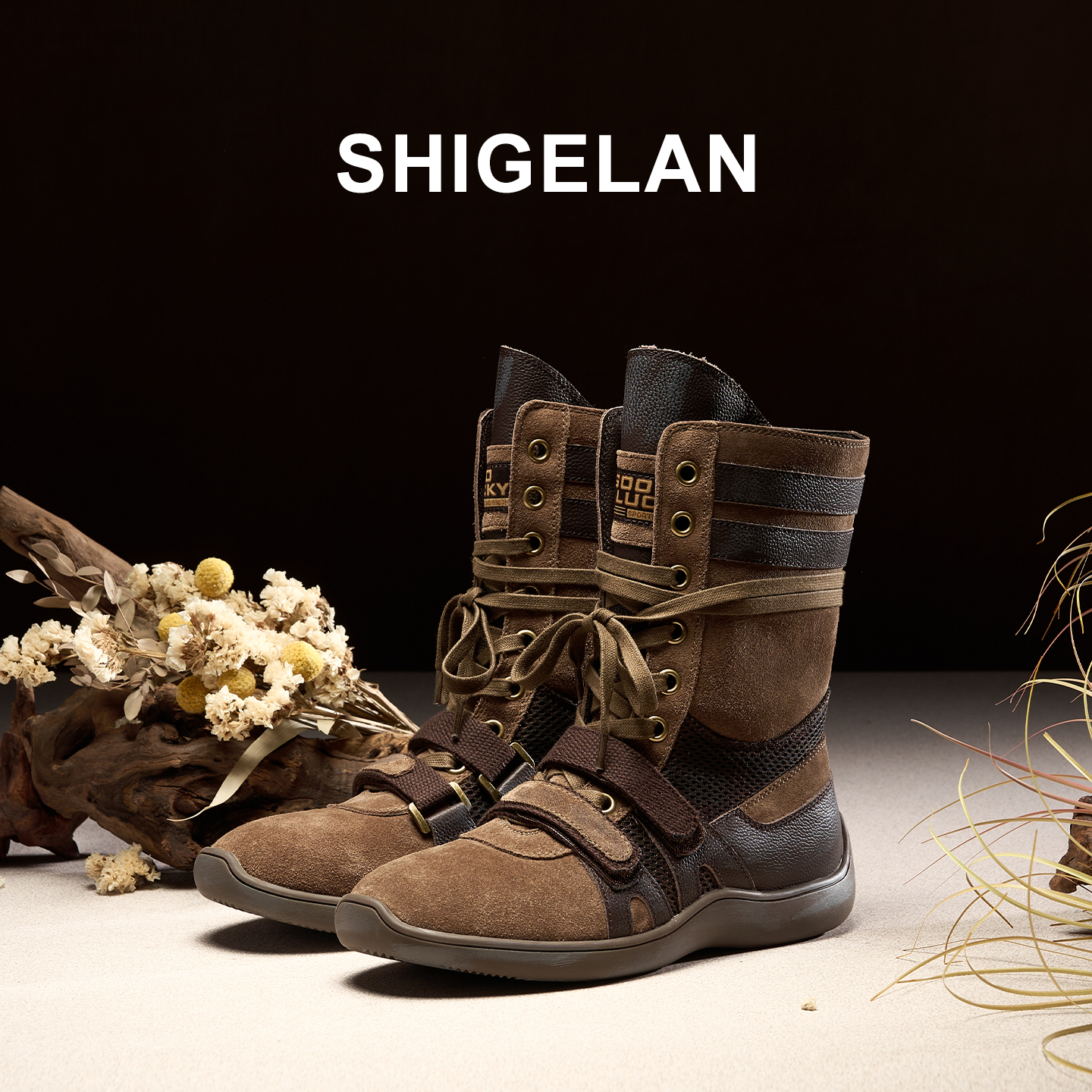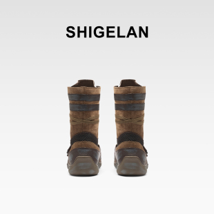 诗歌兰2025新款 复古做旧马丁靴百搭休闲靴子潮 真皮绑带中筒靴女鞋