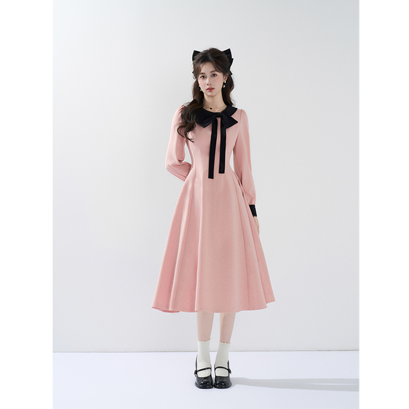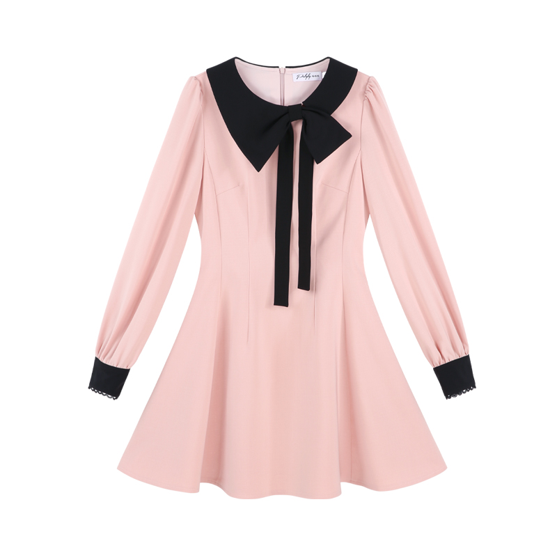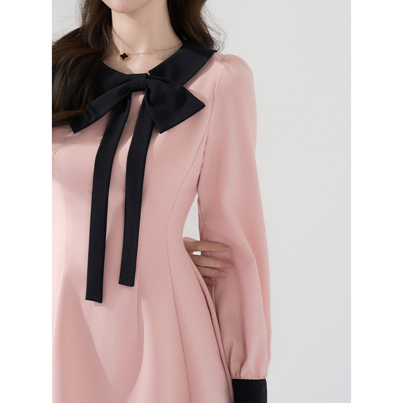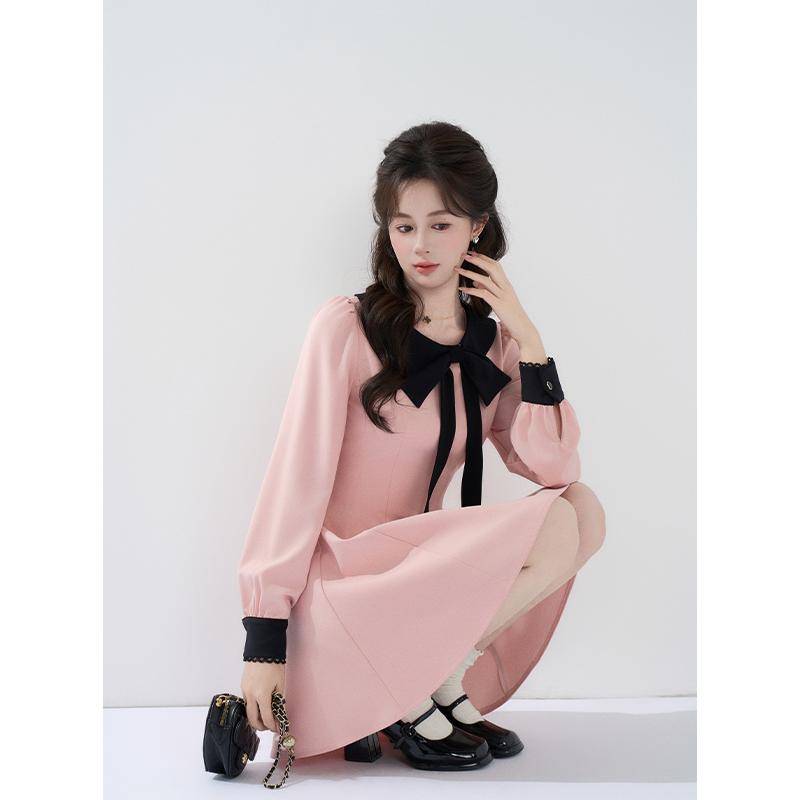 设计感小众收腰甜美拼接裙子 连衣裙女秋季 法式 富家千金风粉色长袖