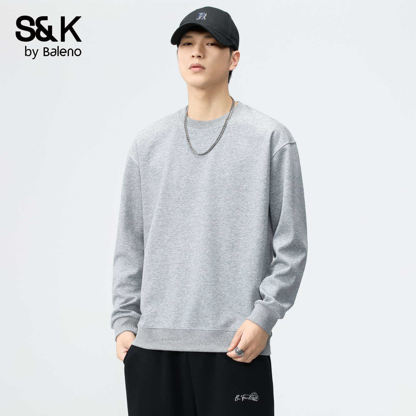 内搭宽松纯色白打底衫 t恤男秋冬季 加绒圆领卫衣 420G重磅长袖 美式