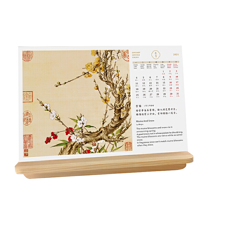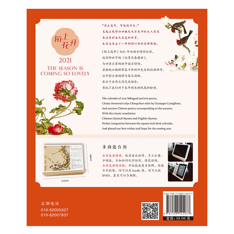 与四季 应景 译作 选用郎世宁 经典 仙萼长春图册 并搭配以翻译界泰斗许渊冲先生 陌上花开2021年台历 中国古诗词