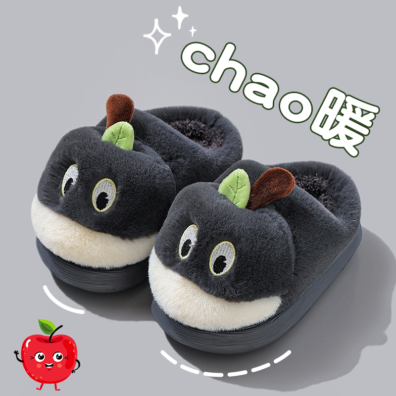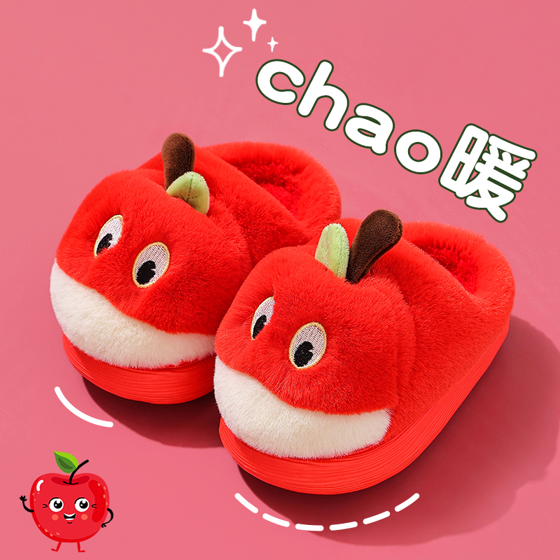 软底防滑卡通苹果宝宝棉拖鞋 居家室内女童棉鞋 男童冬季 儿童棉拖鞋