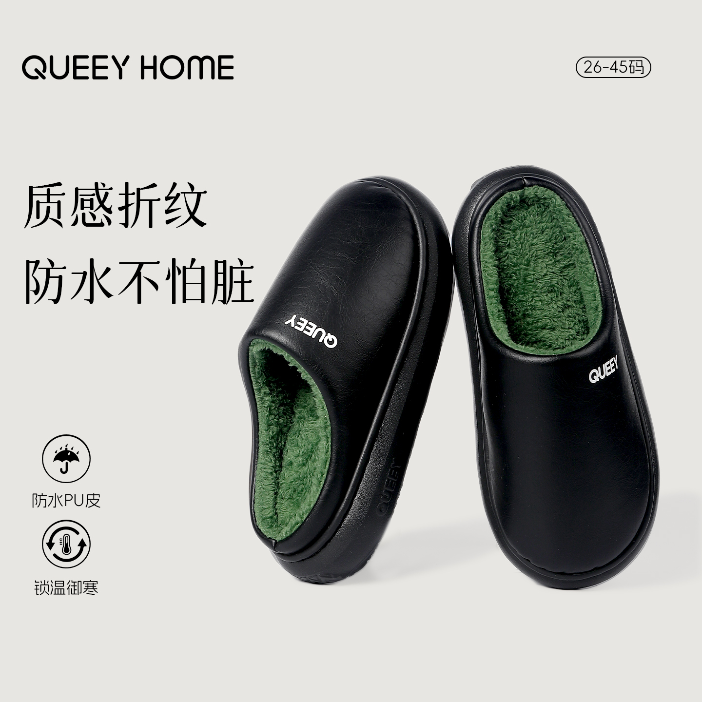 买一送一防水棉拖鞋 室内家居防滑抗菌防臭保暖情侣棉拖男 女秋冬季