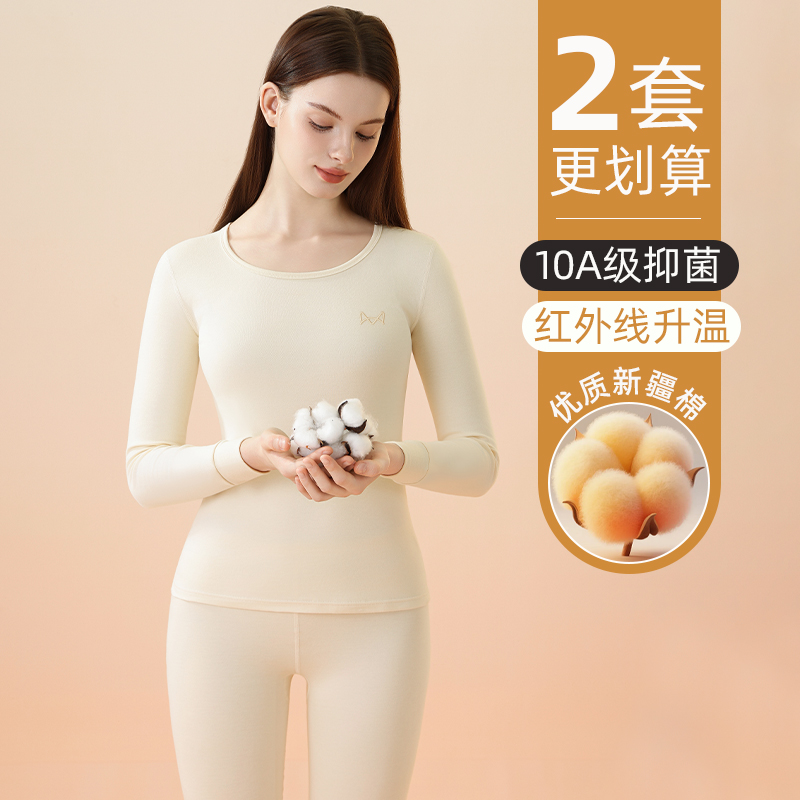 冬2025新款 上衣内搭打底秋衣秋裤 纯棉全棉毛衫 猫人保暖内衣女套装