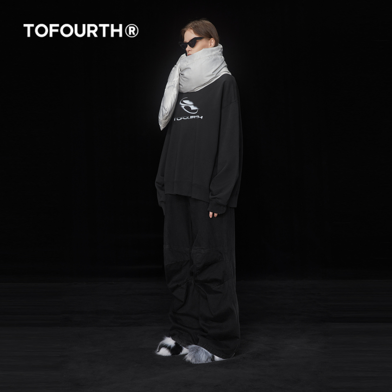 设计感印花黑色纯棉圆领套头上衣男女 商场同款 TOFOURTH 卫衣
